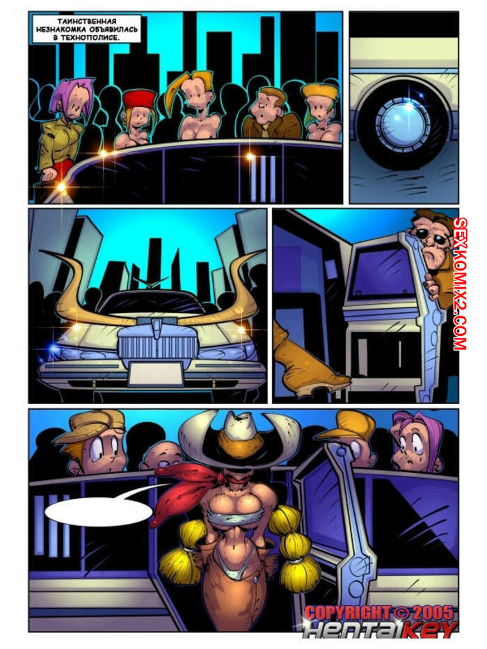 Порно комикс Героиня Лили. Ковбойщица Сисястая красотка ковбойщица с огромным хуем наткнулась в городе на шикарную девушку и захотела забрать ее с собой на ранчо. Она решила ее соблазнить, поэтому разделась и заставила девушку сосать ее большой хуй.
