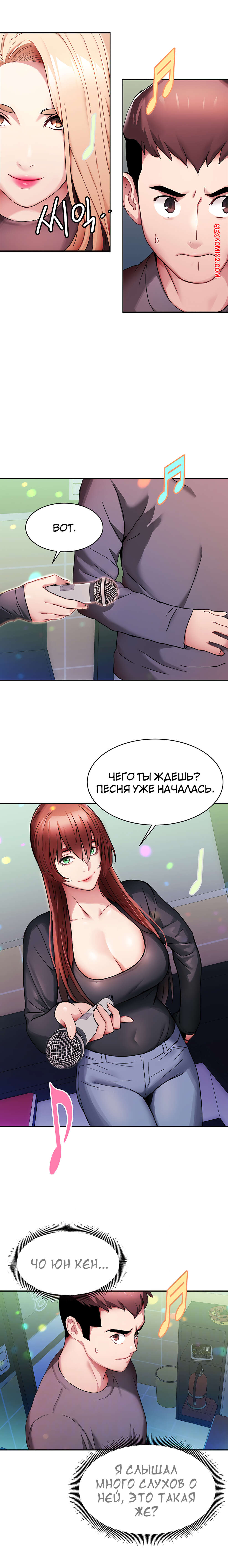 Порно комикс Узы мести. Части 4 и 5 и 6. Bond of revenge Горячая красотка брюнетка позвала парня с собой в караоке, но вместо пения и микрофона она стала играться с его большим хуем. Сучка встала на колени и стала ему сосать, а затем дала себя выебать.