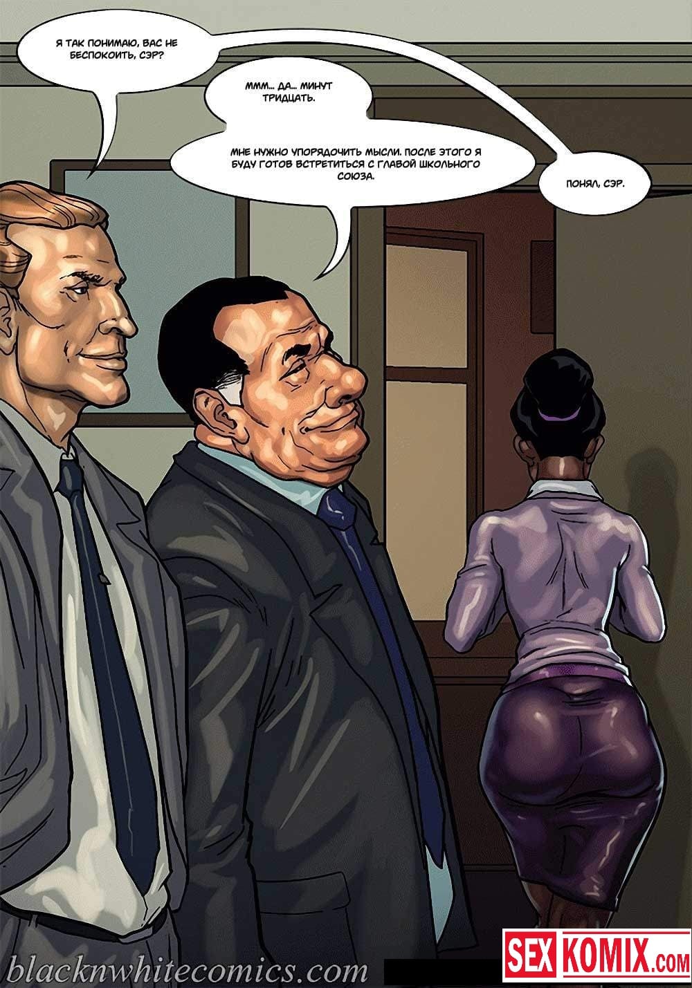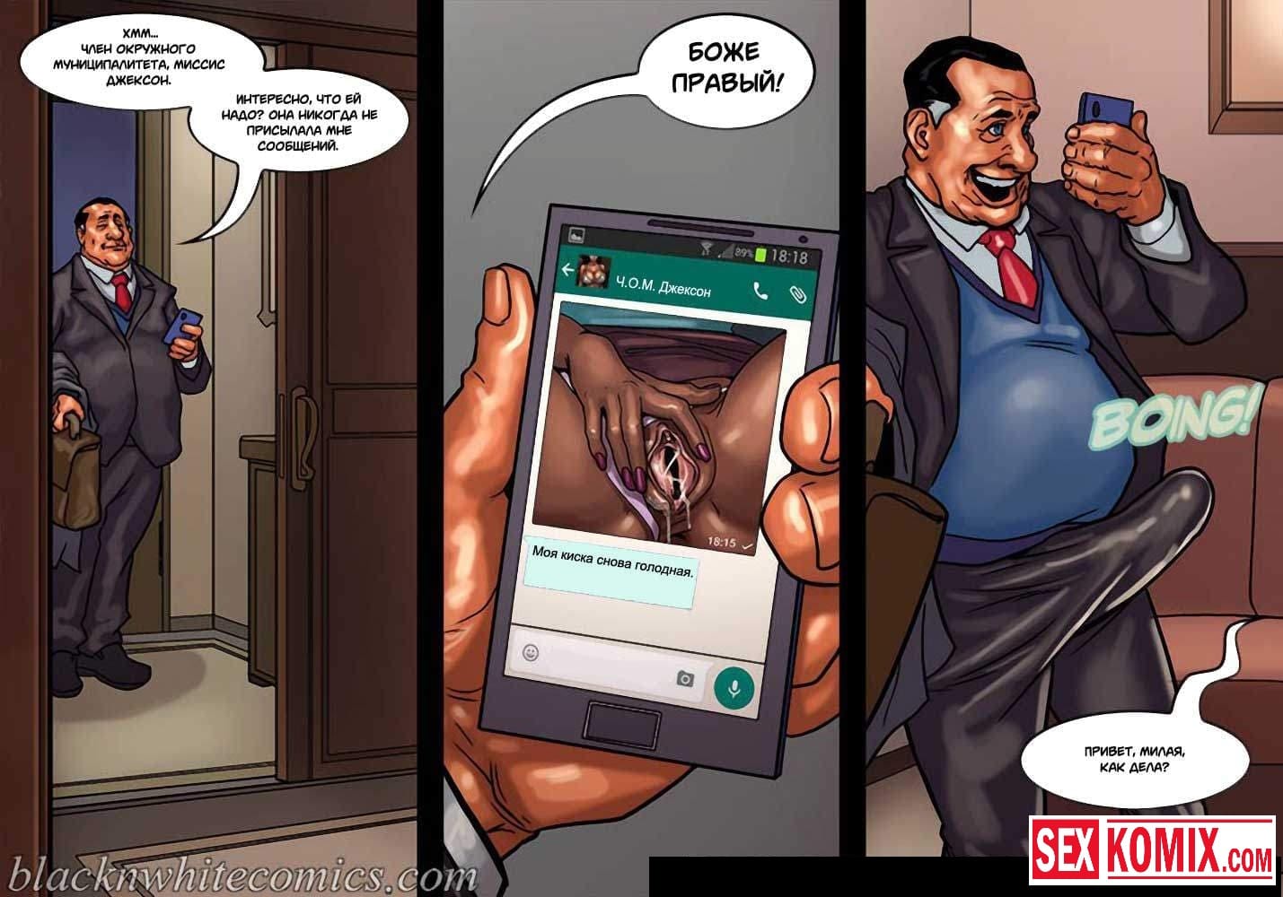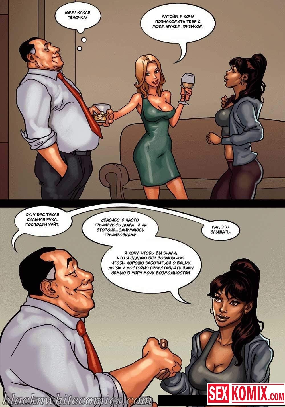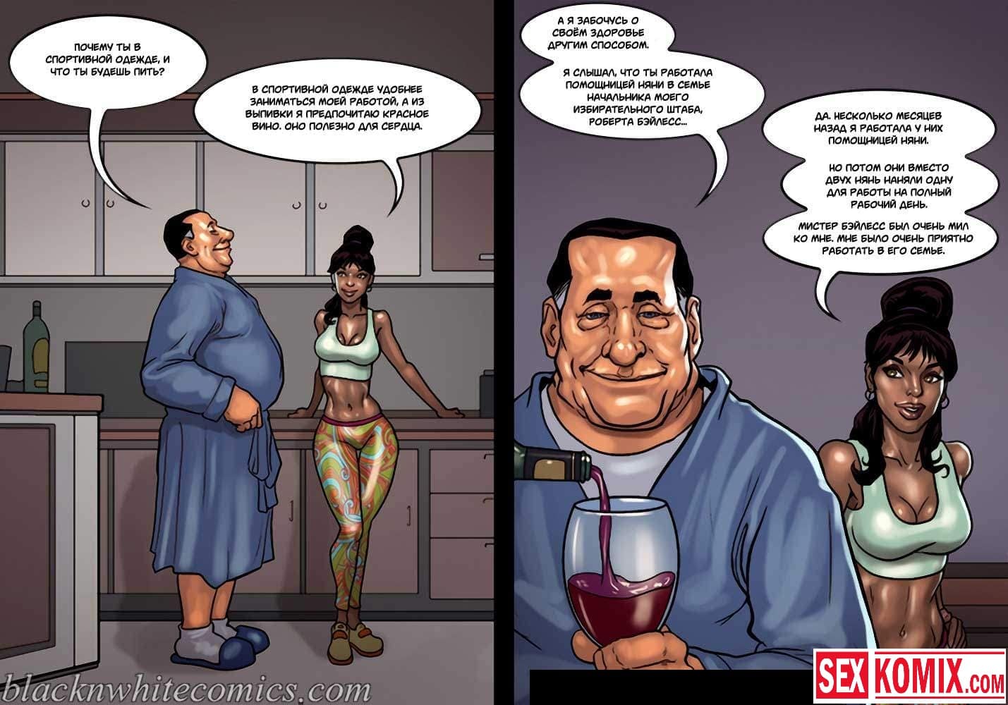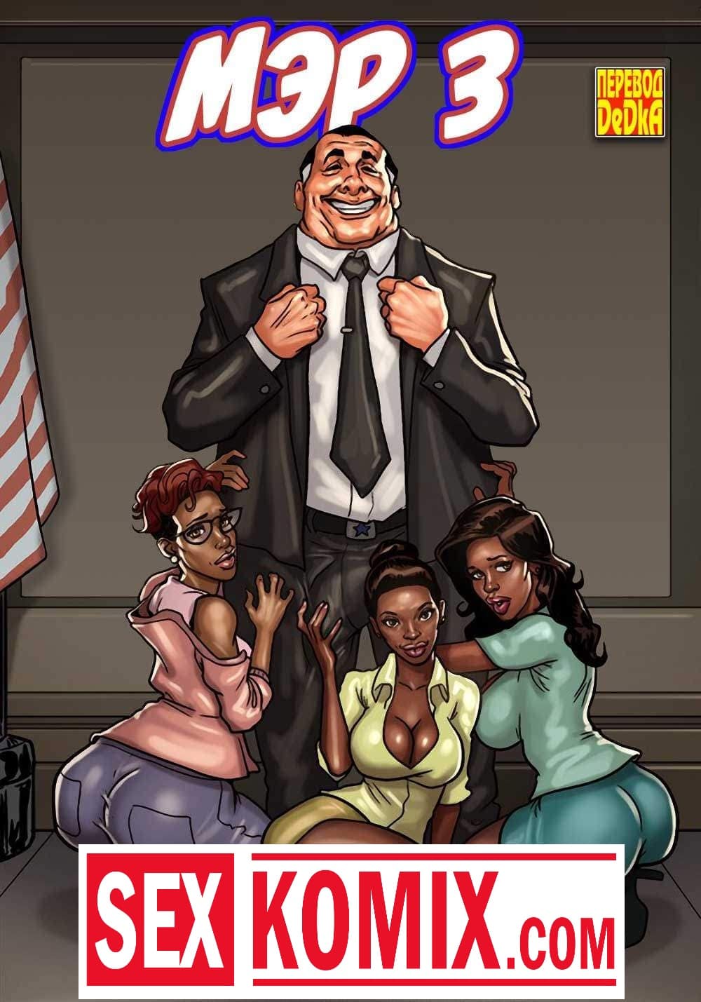 Порно комикс Мэр. Часть 3. Развратный мужчина очень любит заниматься сексом с девушками, и поскольку он является мэром города, в его власти почти все девушки этого города. Несмотря на то, что он женат и очень сильно любит свою жену, ему все равно хватает сил соблазнять и заниматься сексом с разными красотками. И даже когда ему приехала в гости знакомая чернокожая девушка. Ночью, когда она пошла попить воды, он её подкараулил возле холодильника и прямо на кухне трахнул, пока его жена спала.