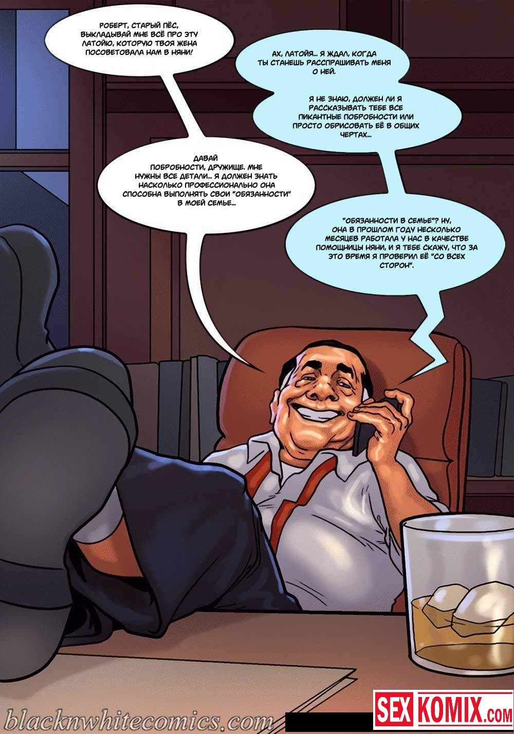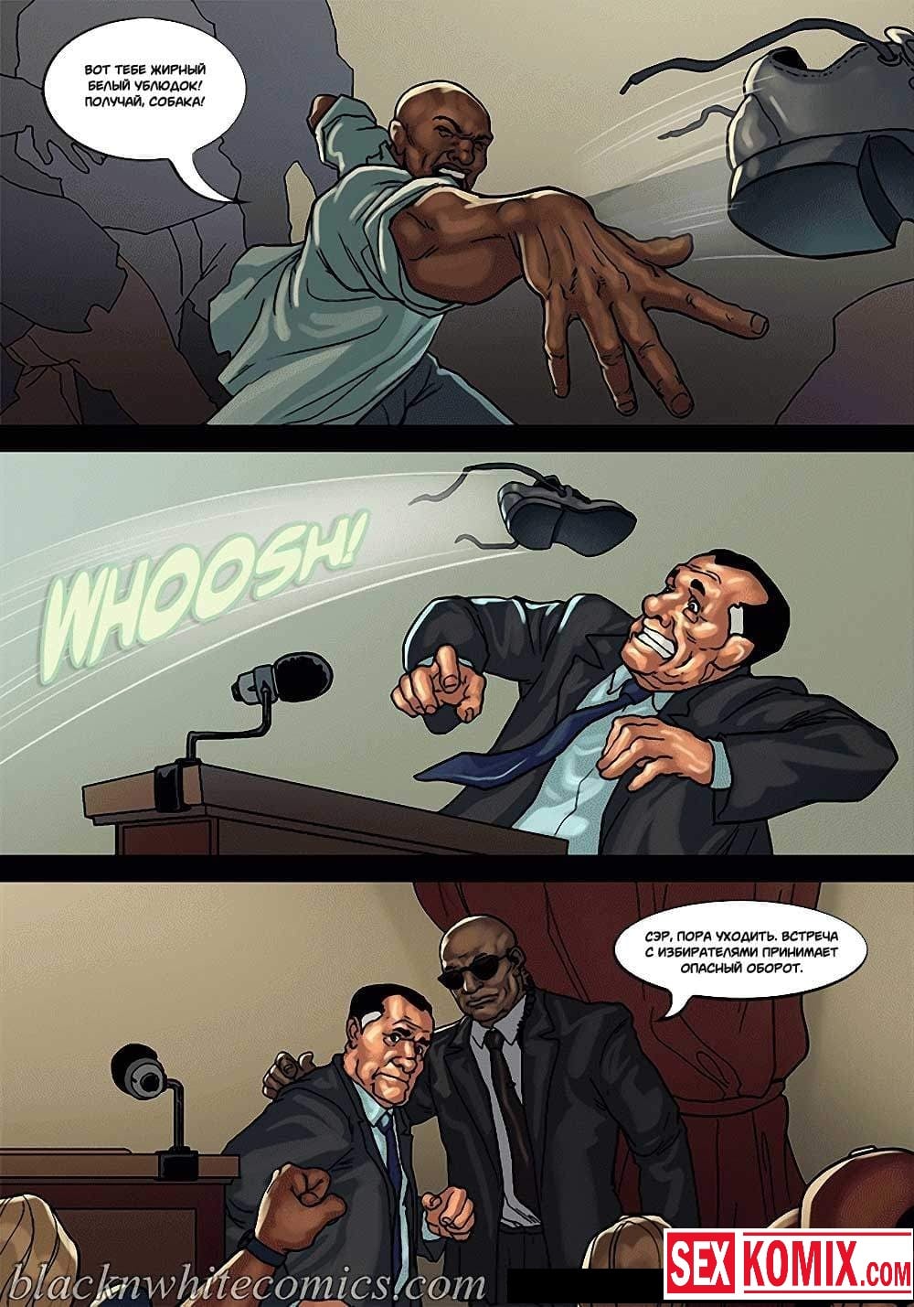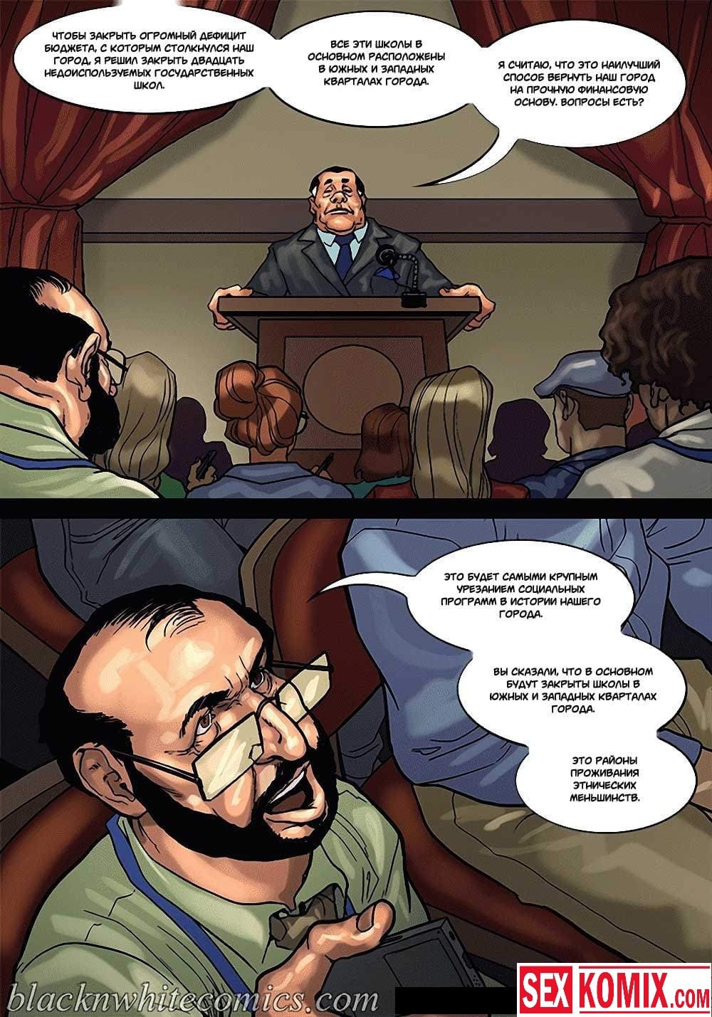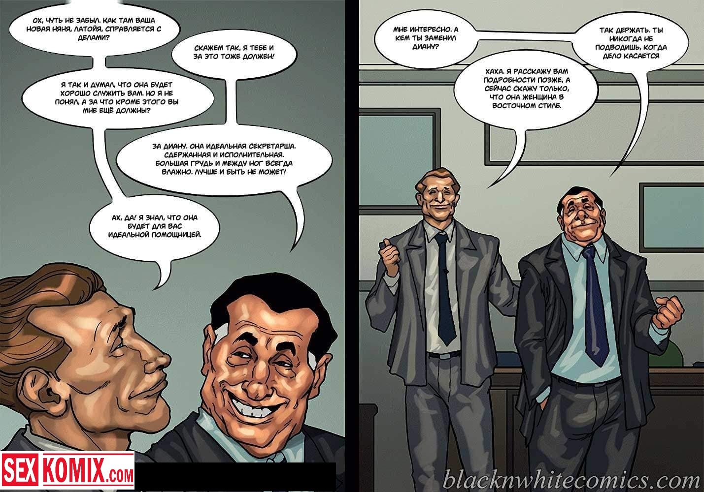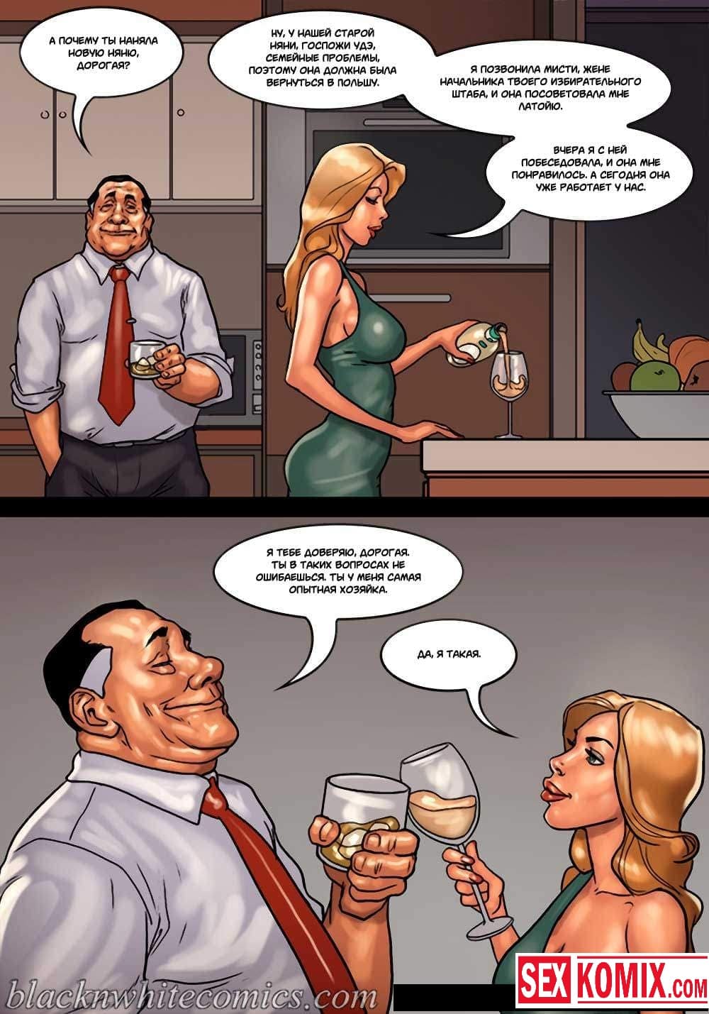 Порно комикс Мэр. Часть 3. Развратный мужчина очень любит заниматься сексом с девушками, и поскольку он является мэром города, в его власти почти все девушки этого города. Несмотря на то, что он женат и очень сильно любит свою жену, ему все равно хватает сил соблазнять и заниматься сексом с разными красотками. И даже когда ему приехала в гости знакомая чернокожая девушка. Ночью, когда она пошла попить воды, он её подкараулил возле холодильника и прямо на кухне трахнул, пока его жена спала.