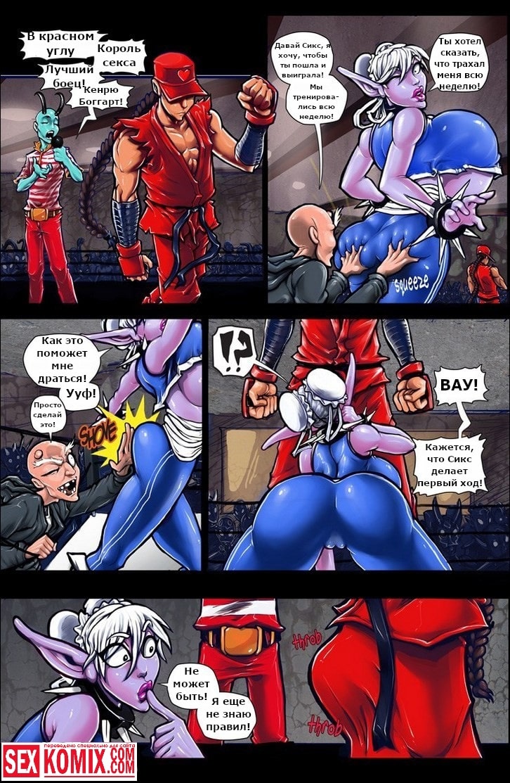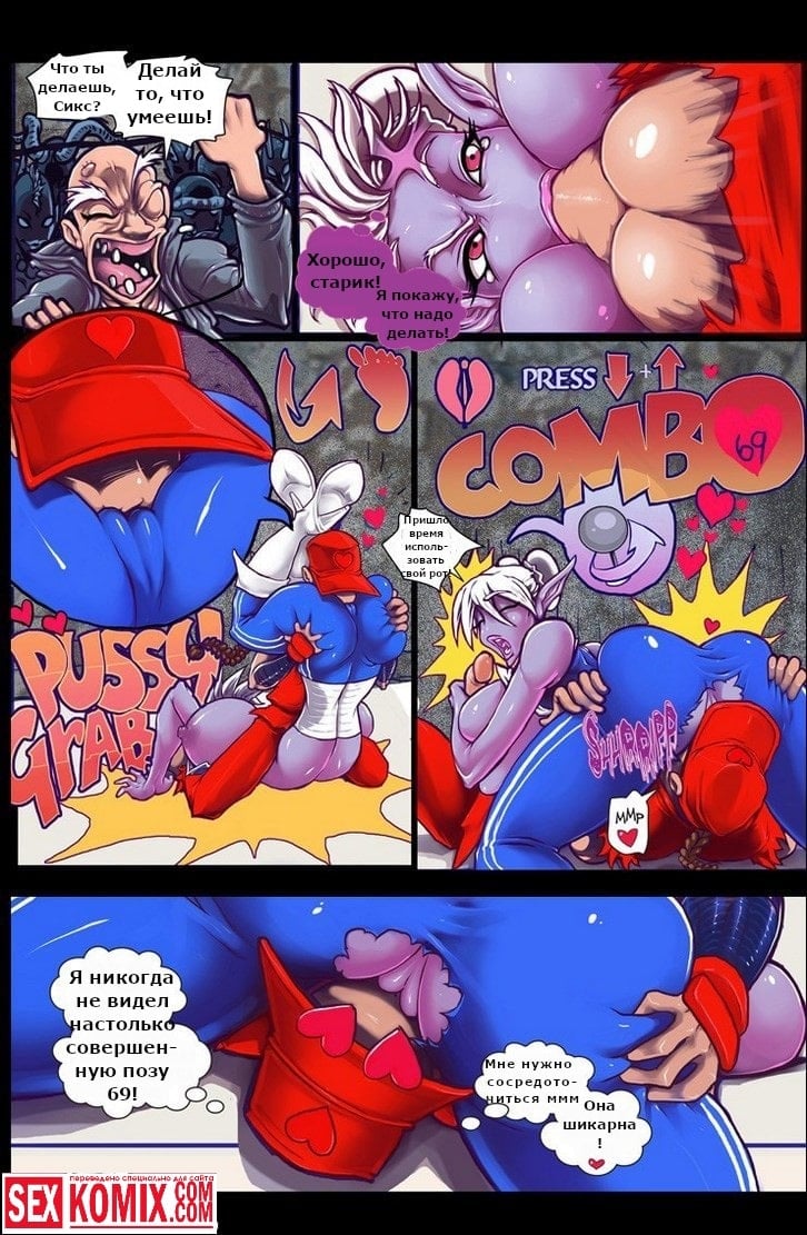 Порно комикс Уличный Секс. Любителям всем известной игры «Уличный боец» будет очень интересно посмотреть этот порно комикс. Здесь вместо стандартных приемов используются секс приемы. На ринг выходит очень сексуальная девушка с большими сиськами и сочной задницей, а против неё двое мужчин. Когда начинается бой они начинают нападение, снимают с нее одежду, оголяя ее сексуальное тело. От этого их члены становятся твердыми как камень, используя супер приём один из бойцов наклоняет свою противницу и засовывает член ей в рот. Несколькими ритмичными движениями он трахает ее в самое горло, а потом кончает на лицо. Безусловно это чистая победа.