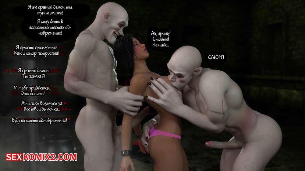 Порно комикс Приключения во сне. Carina Night Trips Молодая горячая брюнетка уснула и ей приснился сон, в котором ее схватили два монстра с огромными хуями. Они решили повеселиться с сучкой, поэтому сперва выебали ее в ротик, а затем хорошенько выебали все ее дырочки.