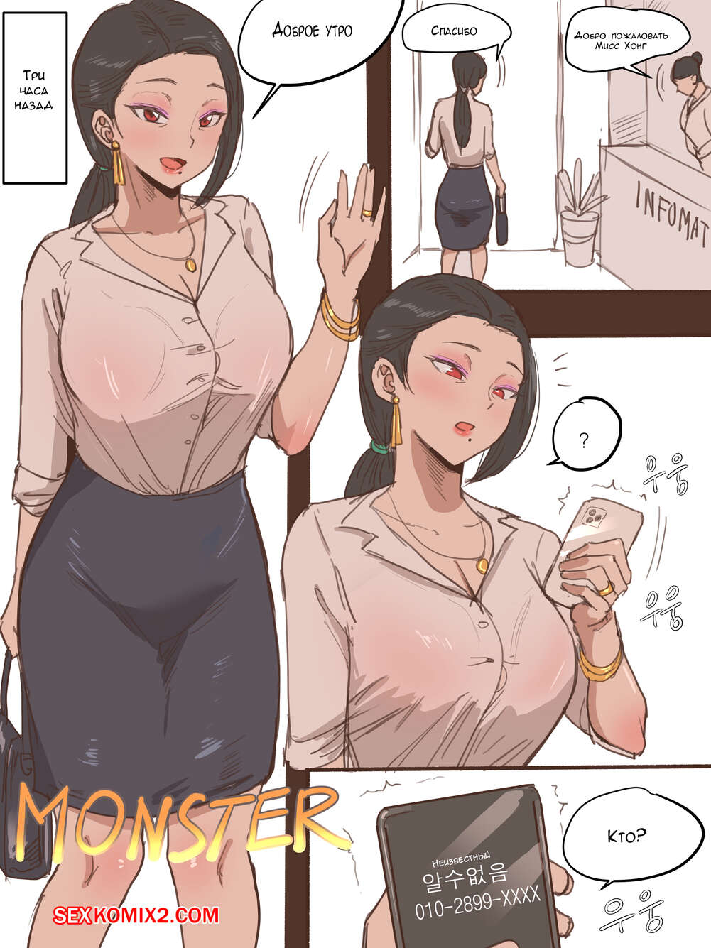 Порно комикс Монстр. MONSTER AFTER Парнишка и его друзья любят издеваться над горячей милфой брюнеткой с большими сиськами. Они заставляют сучку раздеваться перед ними и встать на колени, а затем хорошенько ебут ее в пизду и ротик.