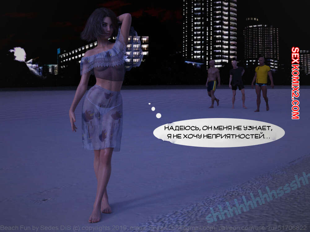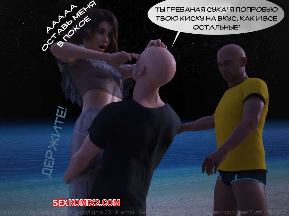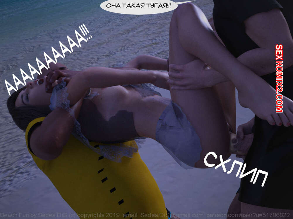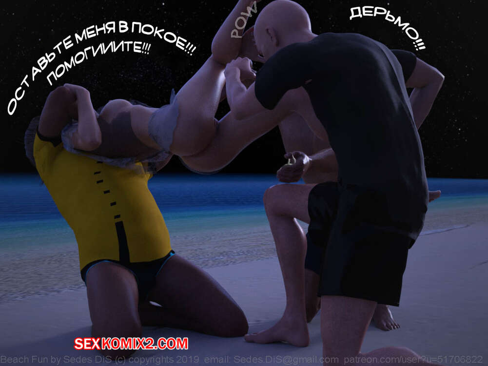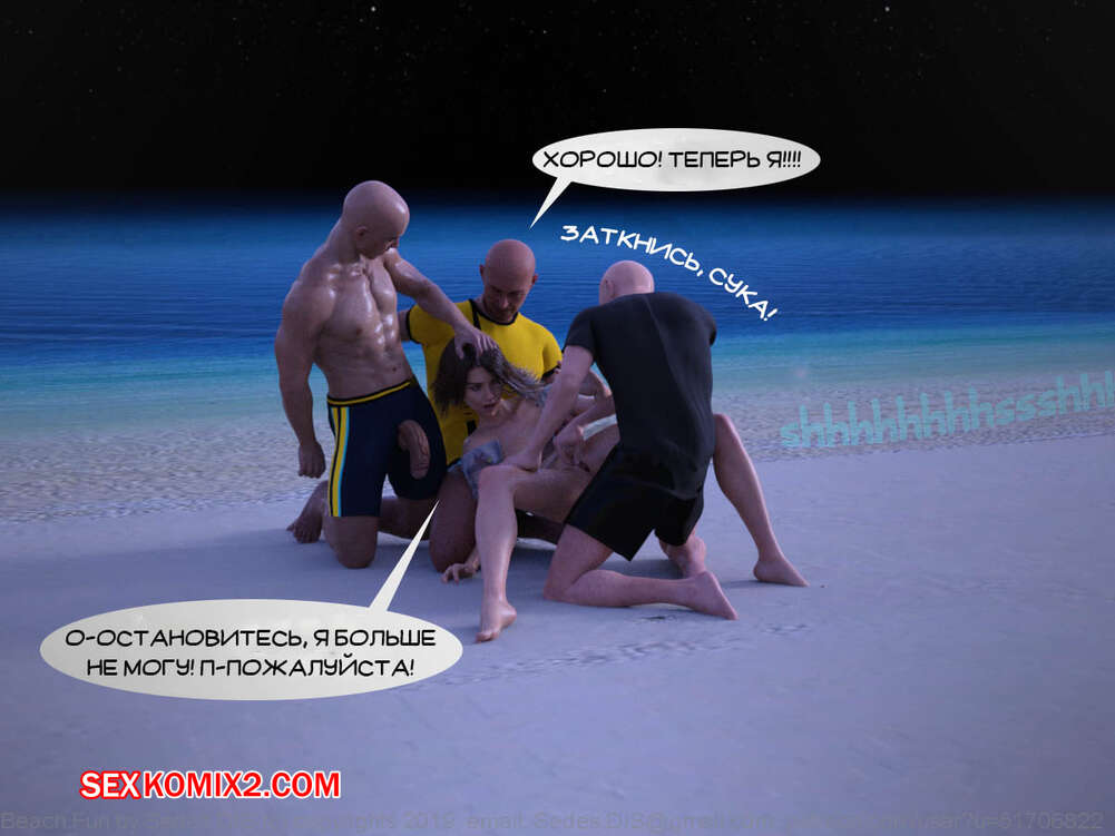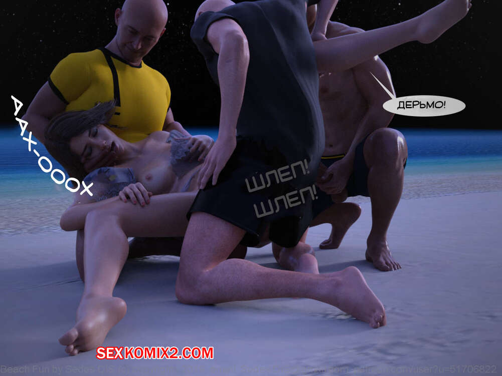 Порно комикс Пляжные развлечения. Beach Fun Парни встретили горячую красотку брюнетку на пляже и решили с ней повеселиться. Они схватили ее и стали раздевать ее, после чего дали ей отсосать свои большие хуи и хорошенько выебали ее во все дырочки.