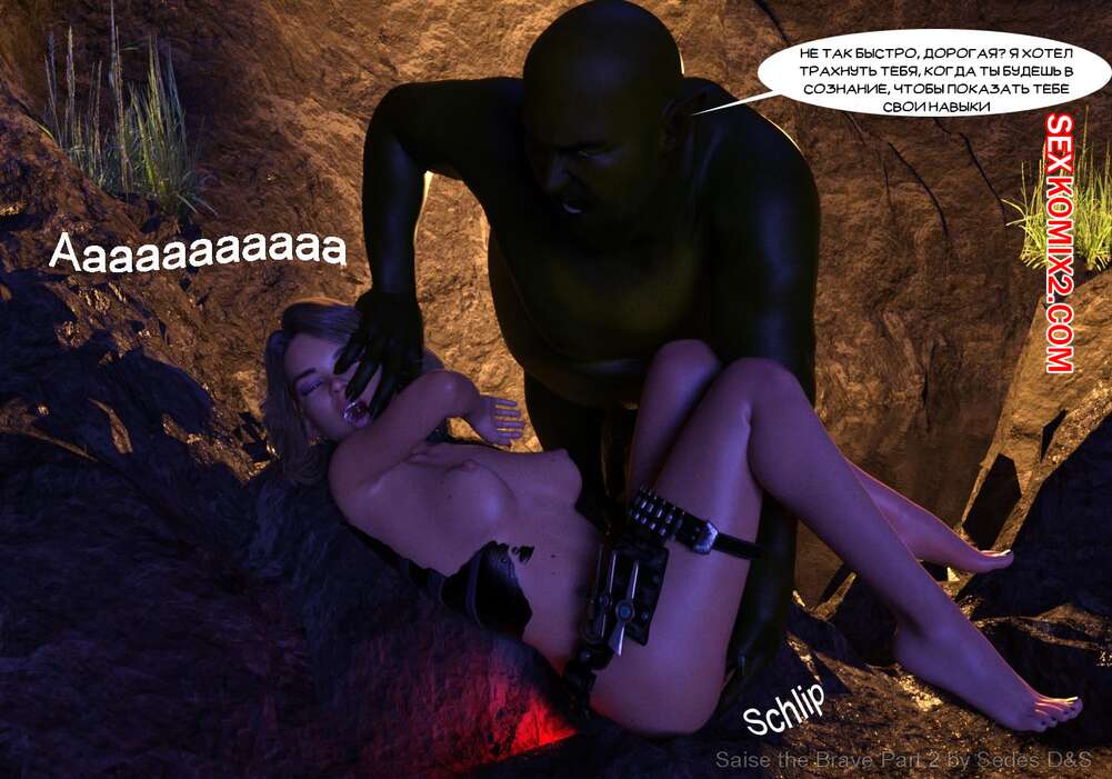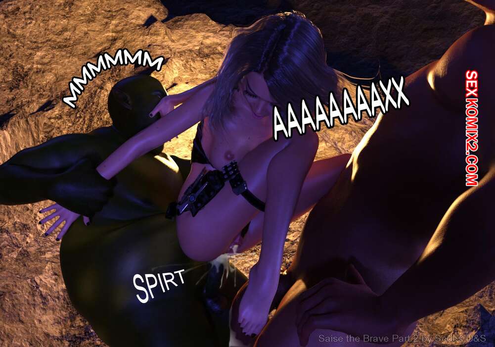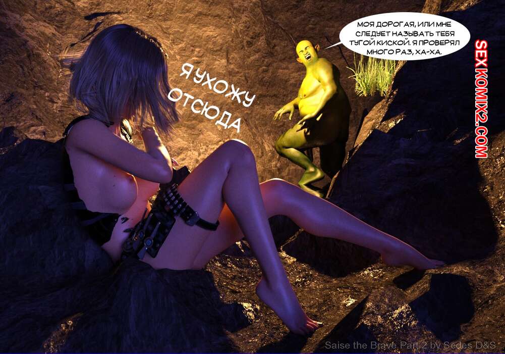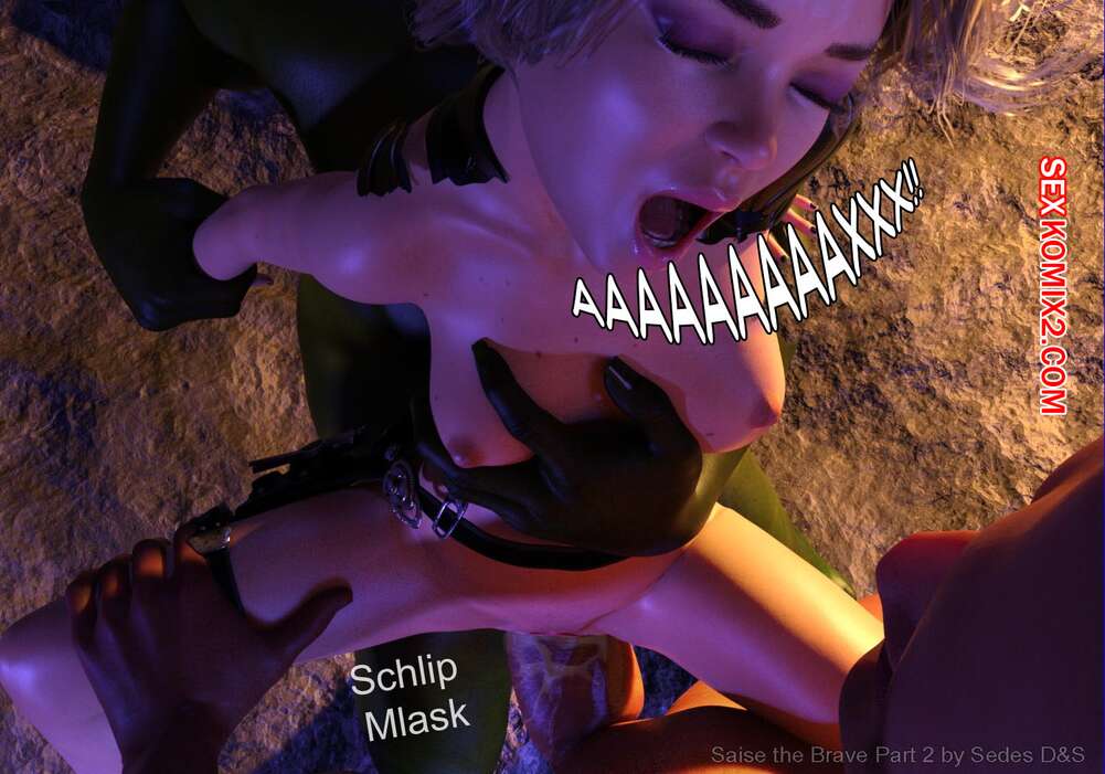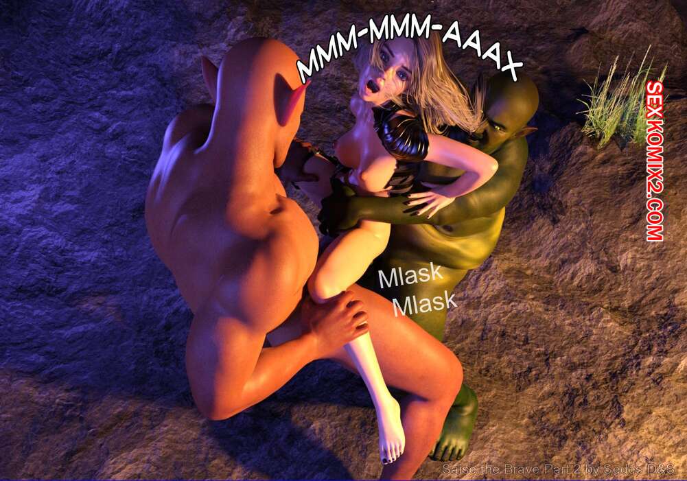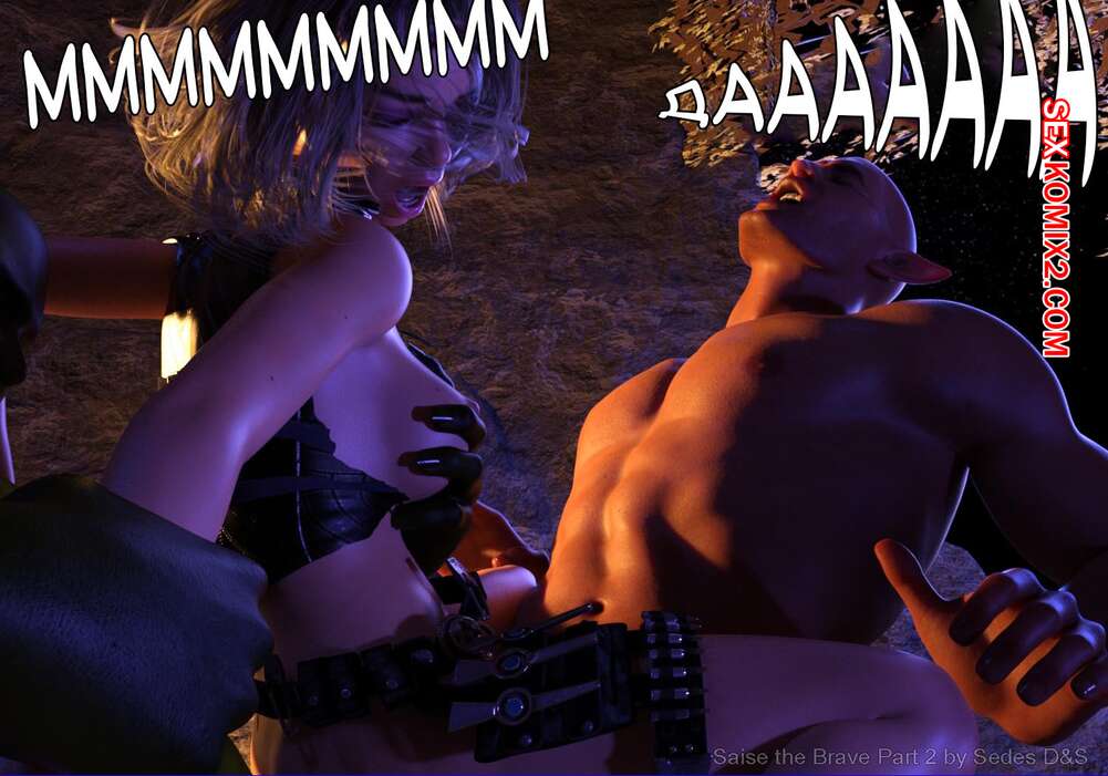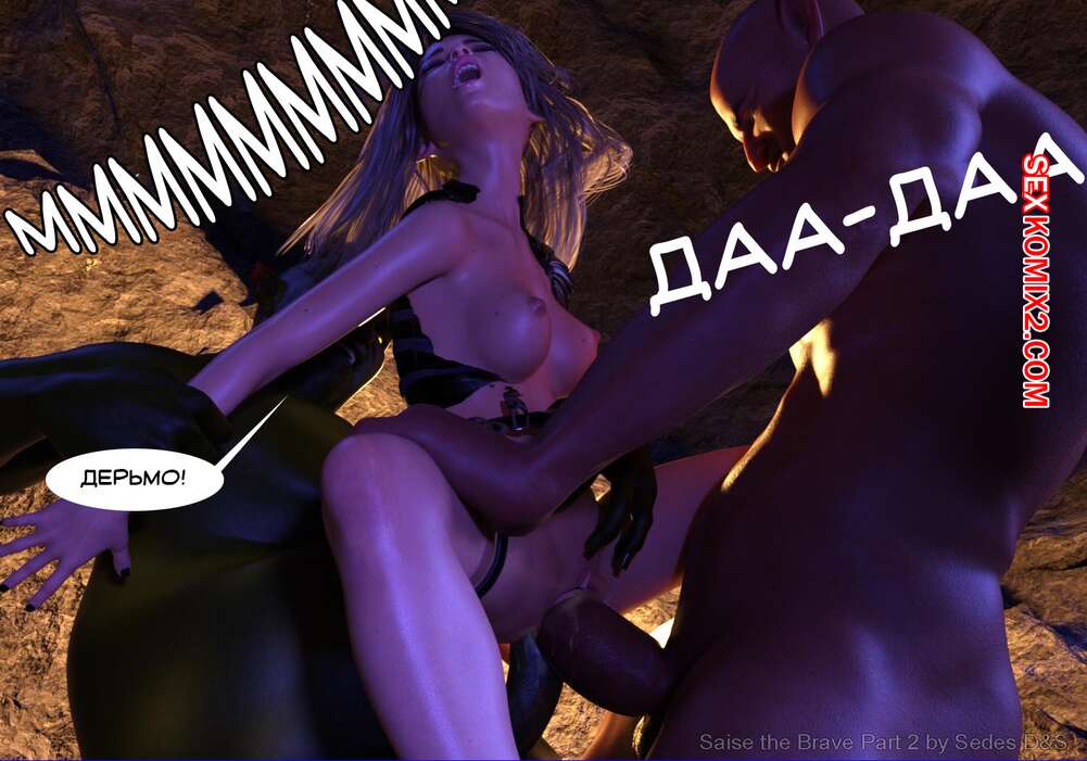 Порно комикс Храбрая Сайзе. Часть 2. Saise the Brave Горячая сисястая красотка блондинка попала в руки двух монстров с огромными хуями. Они раздели ее и стали трахать ее в ротик, а после этого хорошенько выебали ее пизду и задницу.