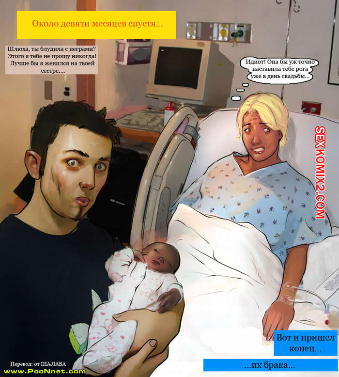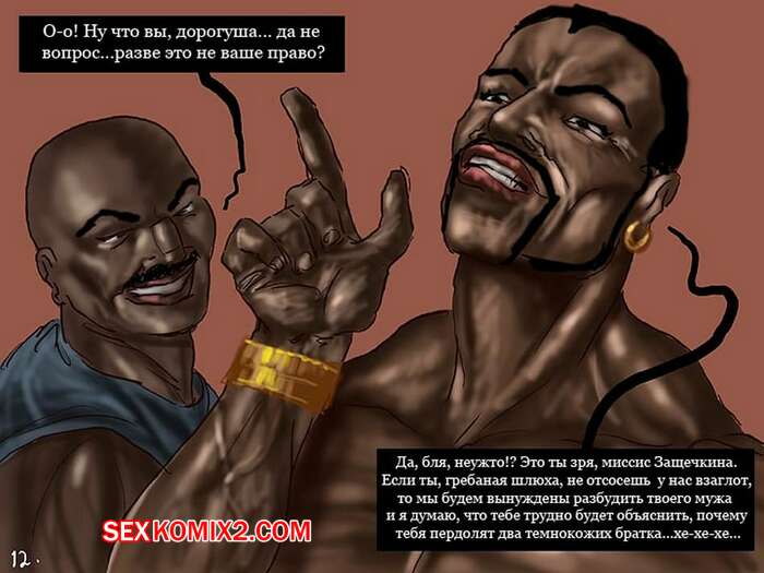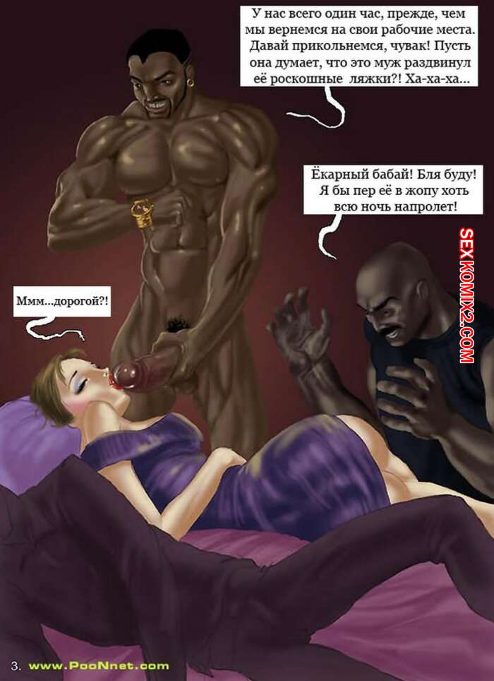 Порно комикс Случай в отеле Горячая сисястая милфа блондинка привлекла внимание двух черных парней в баре отеля. Они втроем уединились и сучка стала сосать их большие хуи, после чего они хорошенько выебал ее во все дырочки.