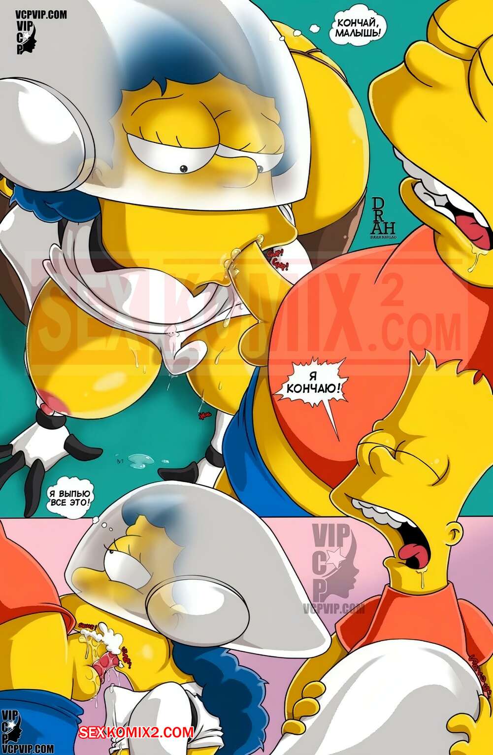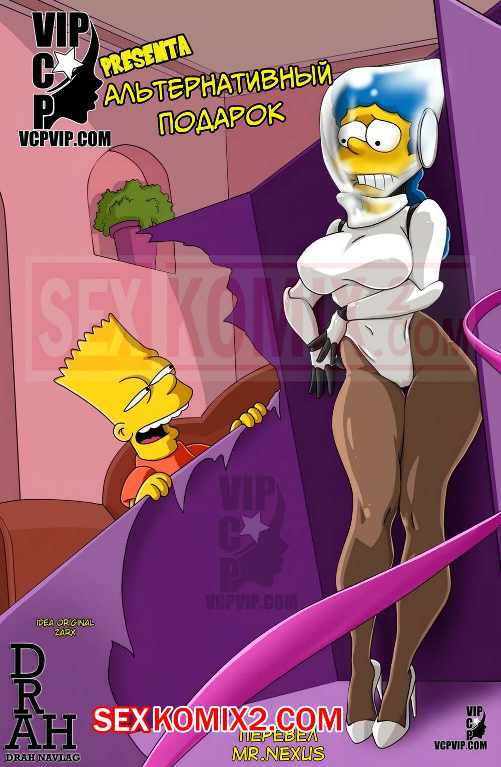 Порно комикс Симпсоны. Альтернативный подарок. The Alternative Gift. Drah Navlag Парень хотел купить куклу натуральных размеров, но его мамка решила сама сыграть для него куклу. Парень получил подарок от мамочки и решил повеселиться с ней. Он дал ей отсосать свой большой хуй, после чего выебал ее.