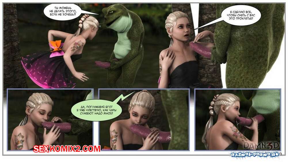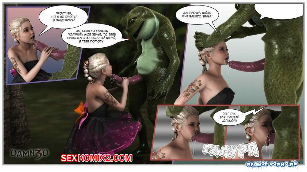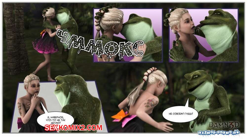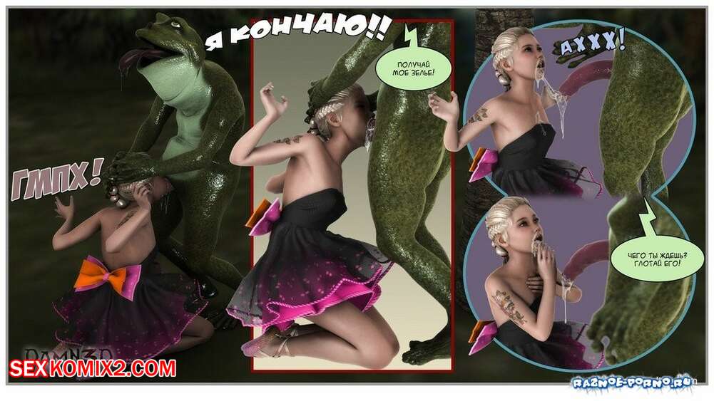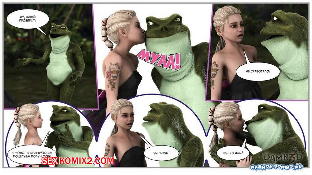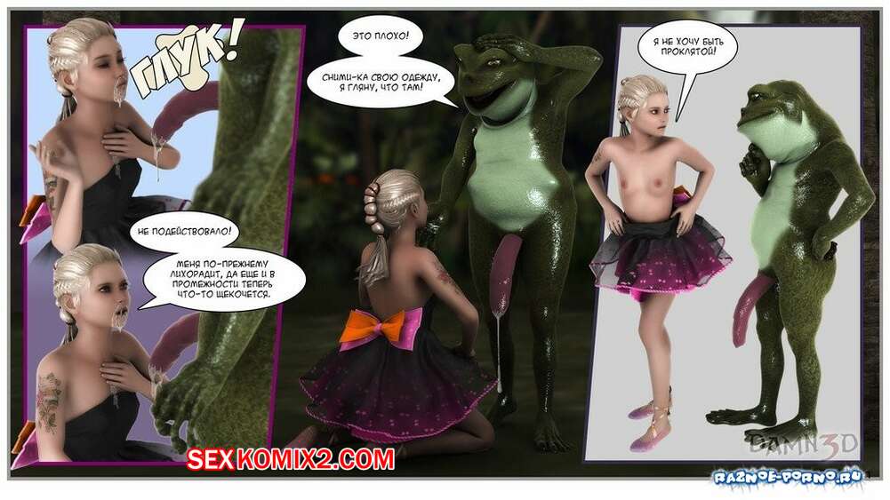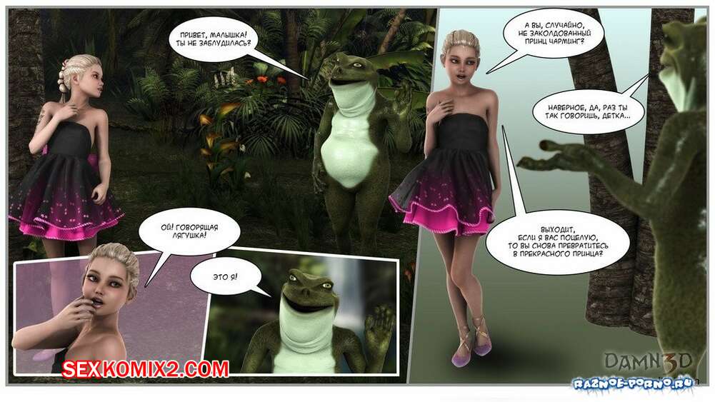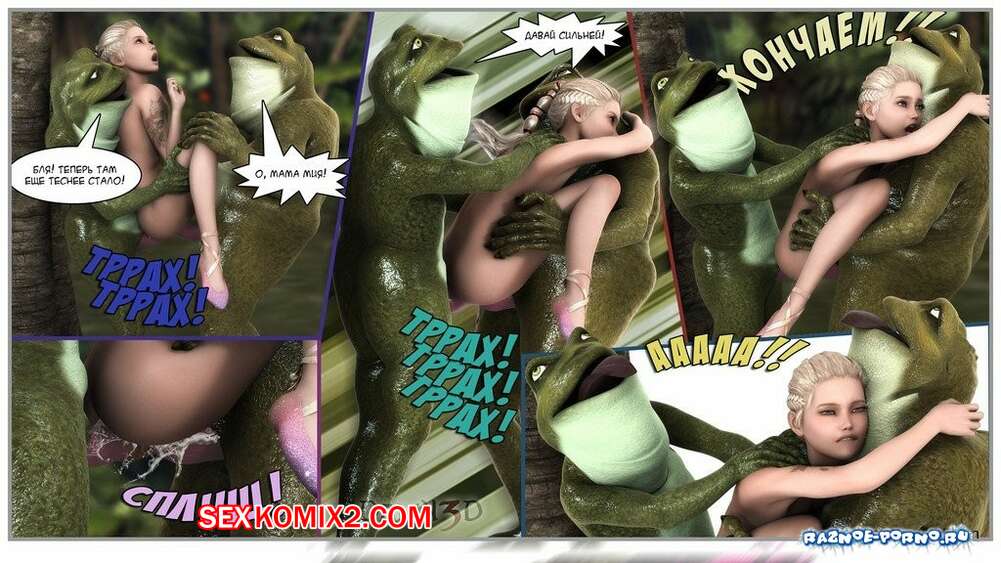 Порно комикс Принцесса и лягушки Горячая сисястая красотка блондинка встретилась в лесу с лягушками с большими хуями. Они раздели сучку и дали ей отсосать свои большие хуи, после чего хорошенько ее выебали.