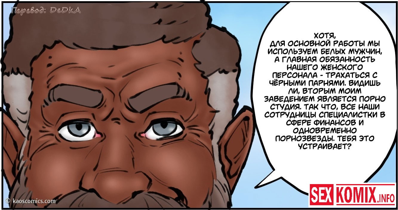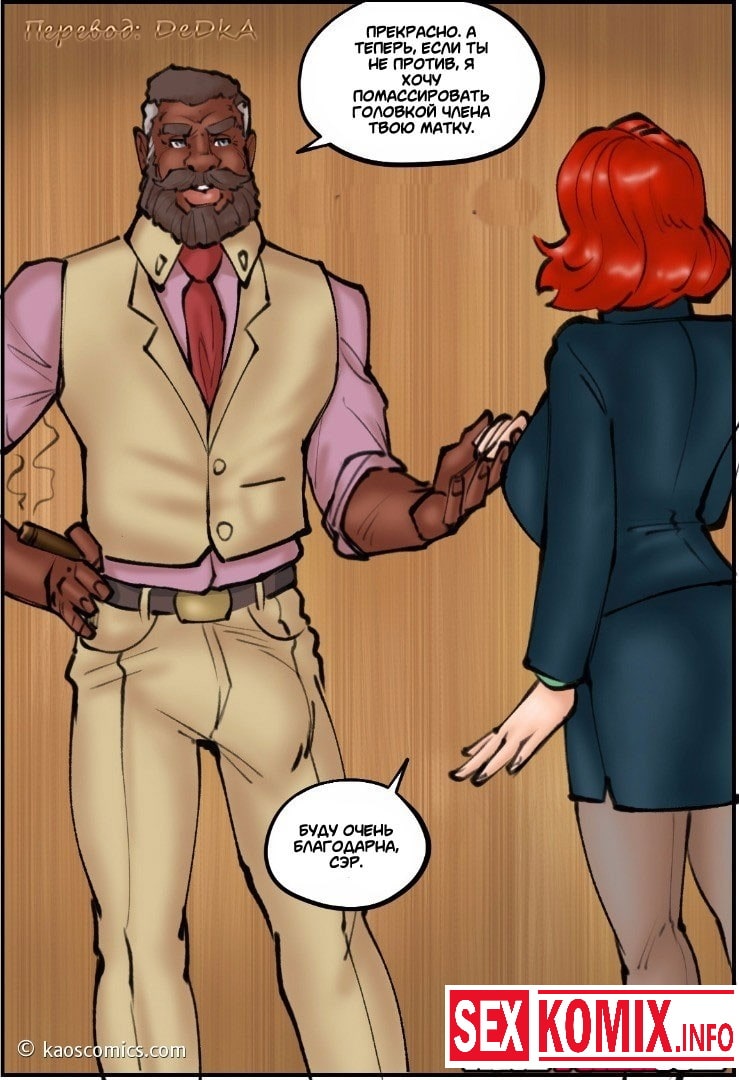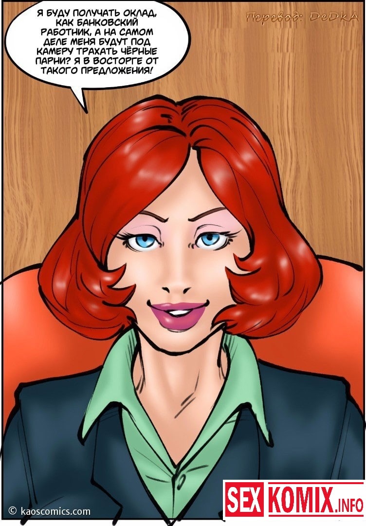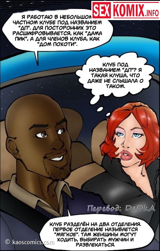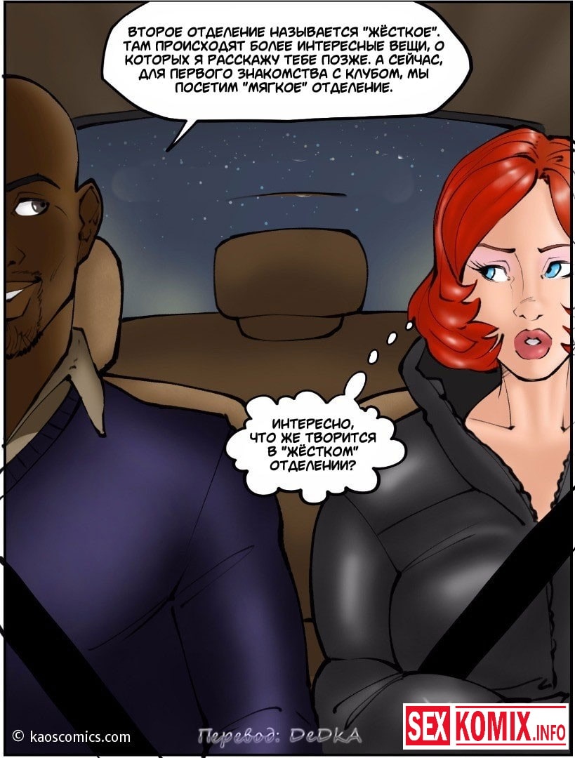 Порно комикс Новая жизнь Аннабель. Часть 2. Очень сексуальная девушка с огненными волосами пошла по новому пути в своей жизни, она бросили своего мужа и погрузилась в мир секса и разврата. В этот вечер красотка со своей подругой отправилась в ночной клуб, чтобы удовлетворить чернокожих парней. Она уже набралась опыта и теперь легко может справиться с двумя огромными черными членами одновременно.