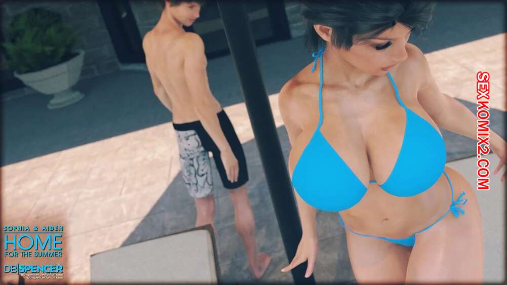 Порно комикс Дом на лето. Home for Summer. DBSpencer Сисястая милфа блондинка сняла дом на лето вместе со своим сыном. Она осталась наедине и решила позагорать возле бассейна. Красотка разделась и стала ласкать свою пизденку, пока сынок за ней наблюдал издалека.