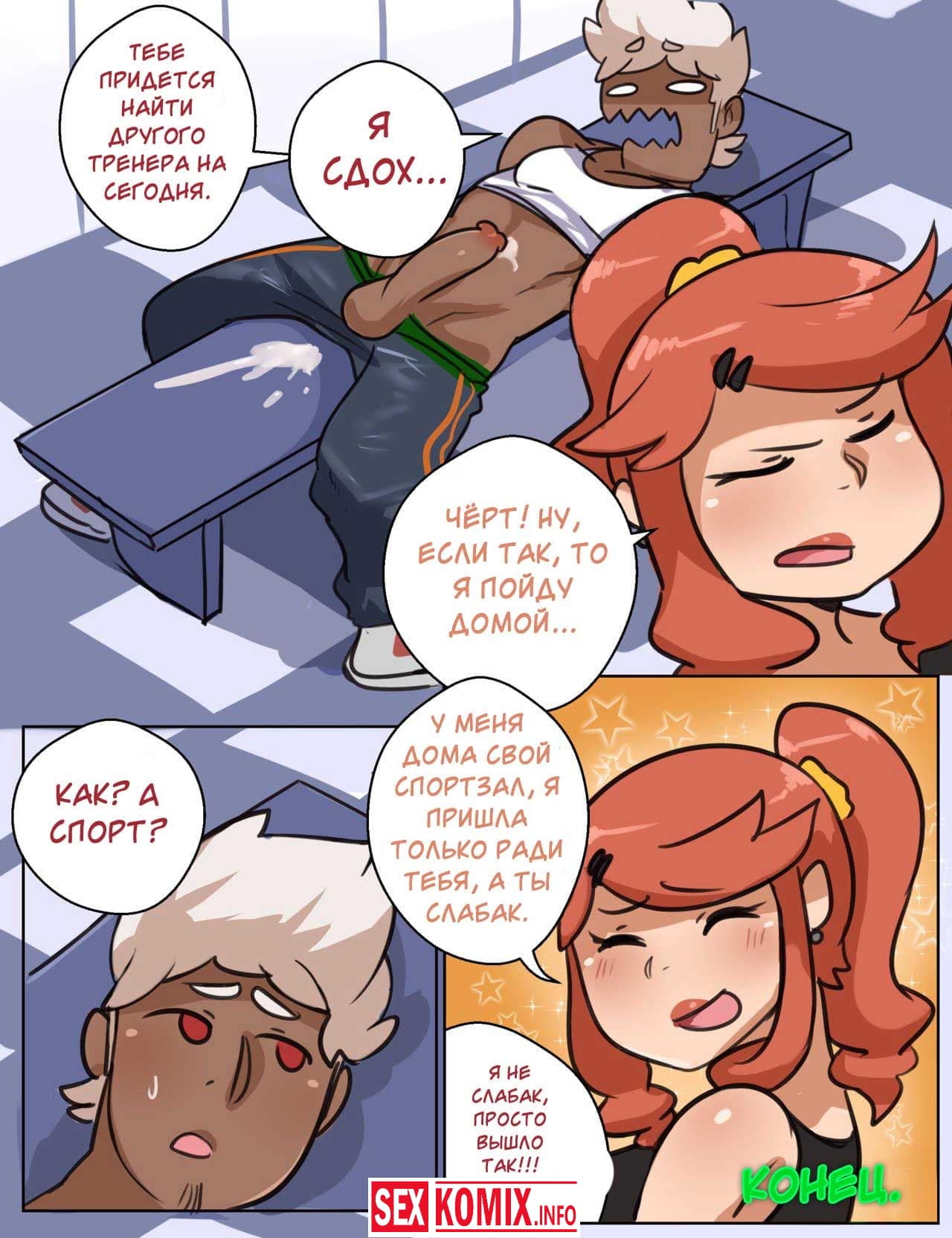 Порно комикс Тренировка друзей. Девушка с сочным телом пошла в спортивный зал, чтобы подтянуть свои телеса. Чернокожий тренер увидев красотку сразу на неё запал, он уже устал от стройных тел девушек. Парню хотелось погрузить свои руки и член в нежное тело этой красотки, он начал с ней заигрывать и девушка сразу поняла намеки.